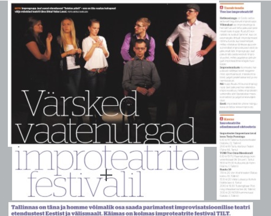 Tallinnas on täna ja homme võimalik osa saada parimatest improvisatsioonilise teatri etendustest Eestist ja välismaalt. Käimas on kolmas improteatrite festival TILT.