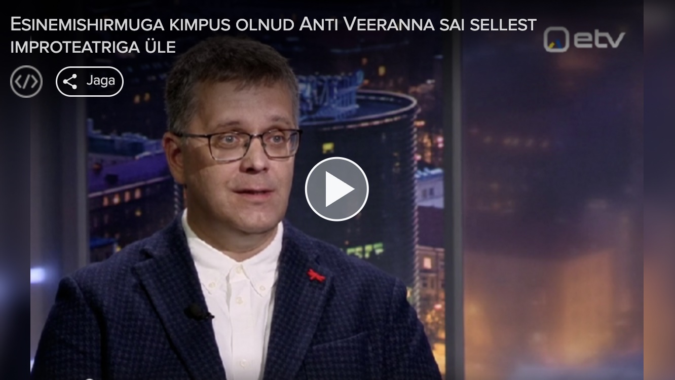 Esinemishirmuga ehk glossofoobiaga aastaid kimpus olnud Anti Veeranna rääkis Ringvaates, kuidas ta sellest improteatri abil üle sai. "Üks võimalus selleks on improteatriga tegelemine," ütles Veeranna. Tema sõnul on improteater suuresti seotud nalja tegemisega laval. "Sa hakkad õppima seda turvalises ruumis, kus on koos umbes seitse kuni kümme inimest ja te kõik teete sama asja," lausus Veeranna ja tõi Ringvaates ka konkreetse näite, mida improteatris tehakse, et esinemishirmu alandada loe edasi Peaasi ja Ruutu10 alustavad vaimset tervist toetavat improtuuri Lõuna-Eestis